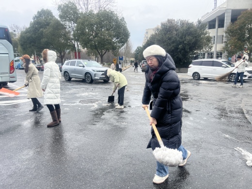 龙年初至,一场大雪把校园变得银装素裹分外妖娆,但突发的雨雪冰冻天气,也给师生员工的出行带来极大不便。下雪就是命令,见雪就要行动。2月23日,教职工报道第一天,公司王明艳党支部全体党员迅速行动起来,在公司党总支领导下,开展扫雪护路行动,最大程度保障师生校内出行安全。