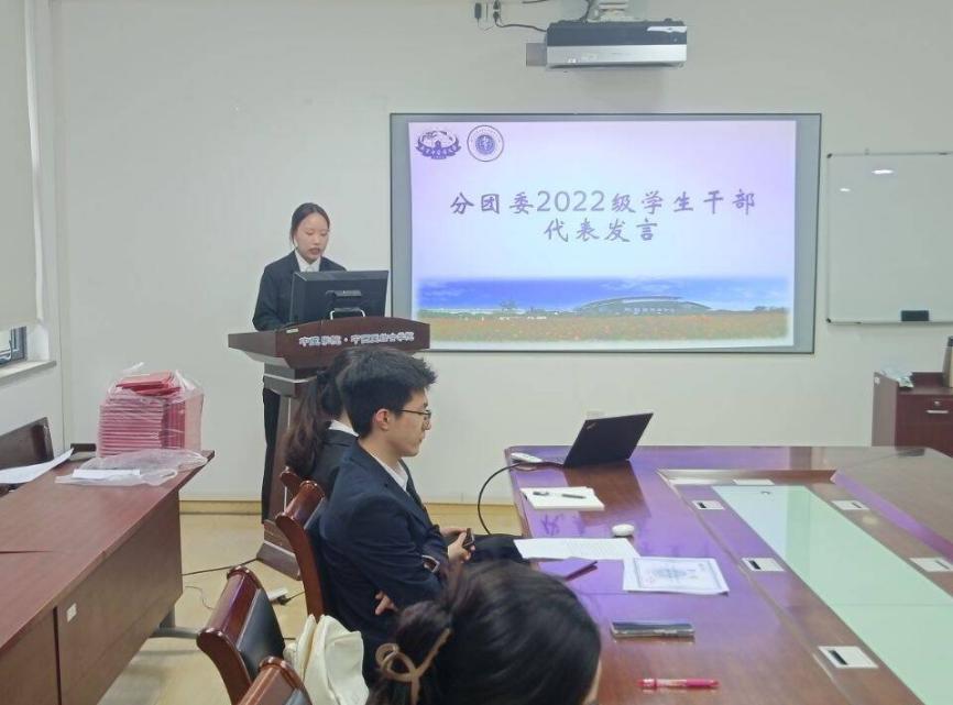 分团委2022级副书记史潇璇进行就职发言。她讲述了自己这一年多来在分团委的点点滴滴。她感谢分团委带来的机遇和挑战,也希望新一届分团委能够继续努力,共同创造分团委更好的明天。张艳梅老师为2021级分团委员工骨干颁发聘书。