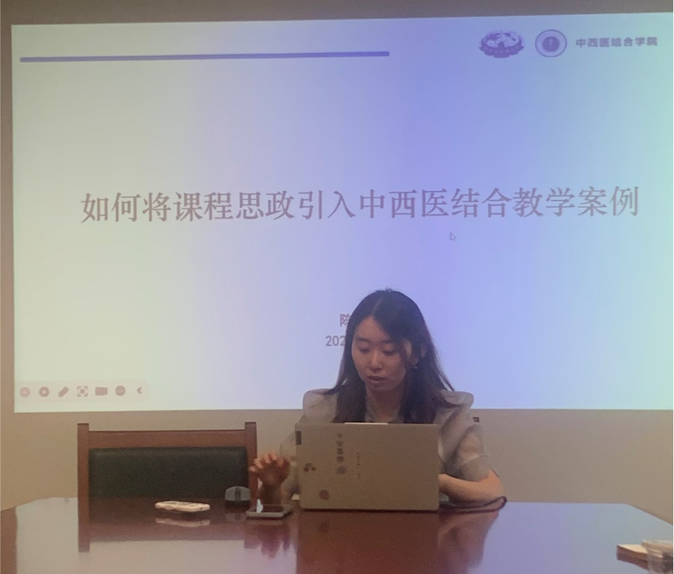 随后,中西医结合妇科教研室陈彦臻老师就“如何将课程思政引入中西医结合教学案例”与大家分享经验,她介绍了在教学案例中思政内容的引入、国家教育相关政策和医学人物案例、临床诊疗案例、中西医结合案例等实例,强调在案例教学中要重视价值观设计、人文情怀设计,引导员工认识中西医结合的必要性和先进性,并分享了相关课程思政资源平台及书籍。