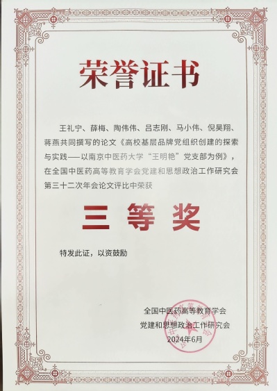 公司王明艳党支部撰写选送的论文《高校基层品牌党组织创建的探索与实践——以tyc1286太阳成集团“王明艳”党支部为例》获三等奖。