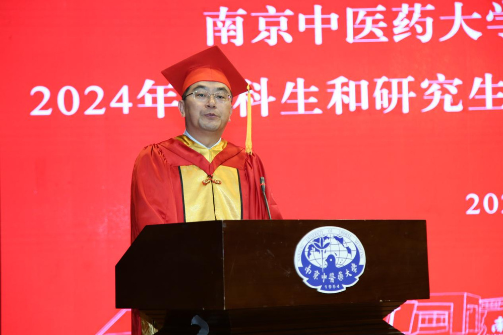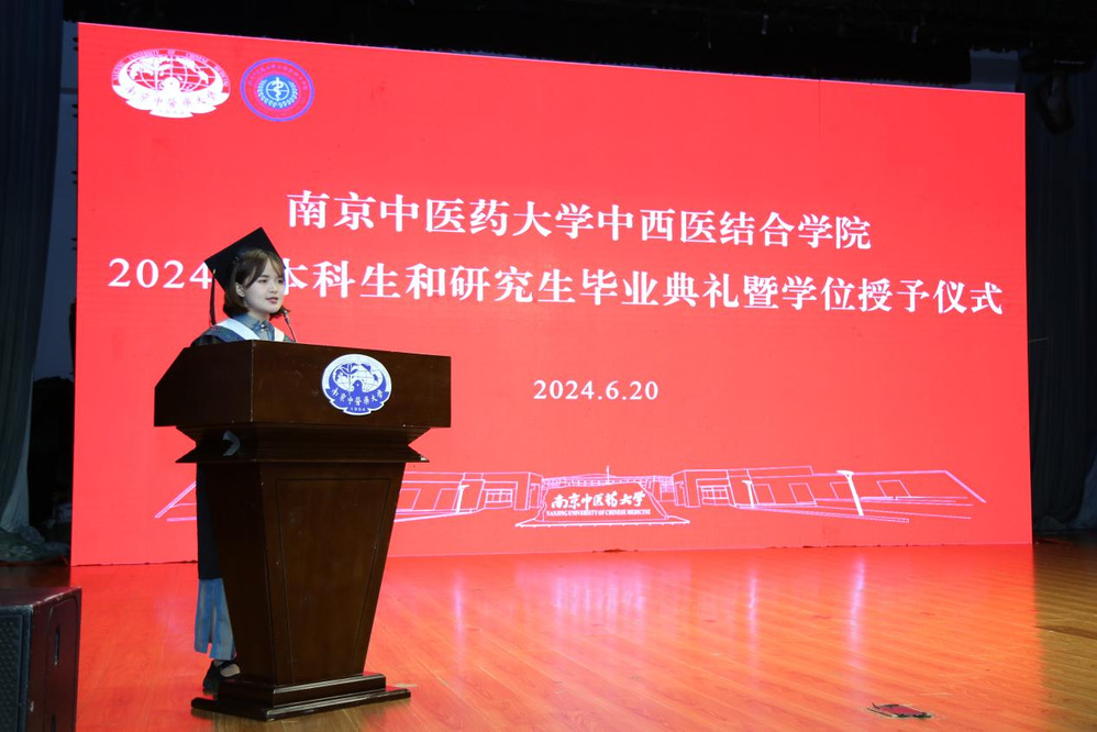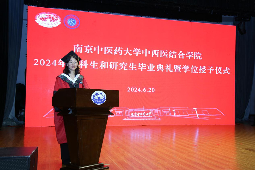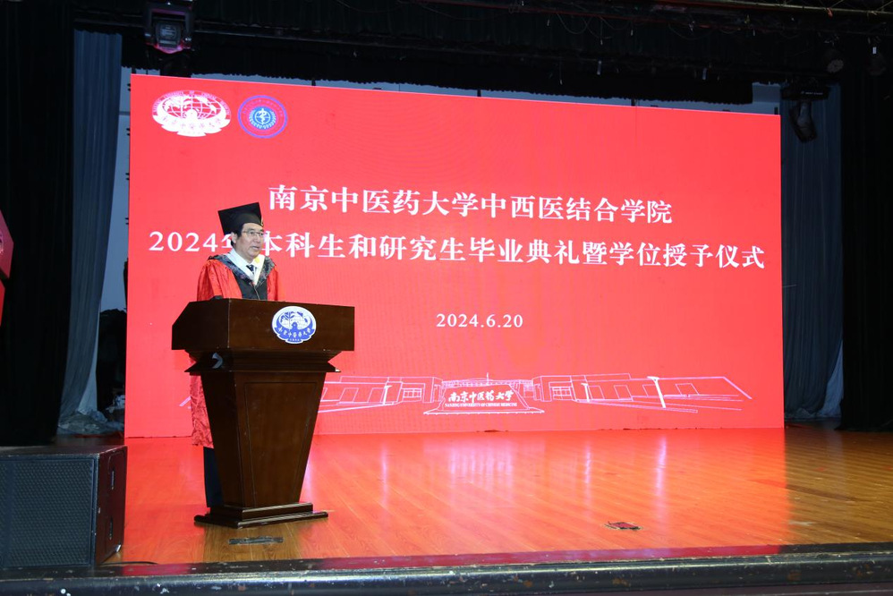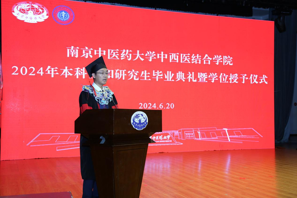 仪式伊始,马勇作为导师代表致辞,他对毕业生提出三点祝愿:一是保持纯真与善良;二是学会包容与尊重;三是懂得坚强与坚忍,要肩负起传承发展中医药事业、促进中西医结合发展的重任。