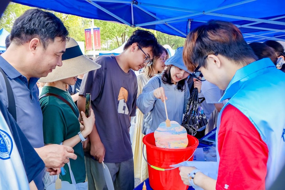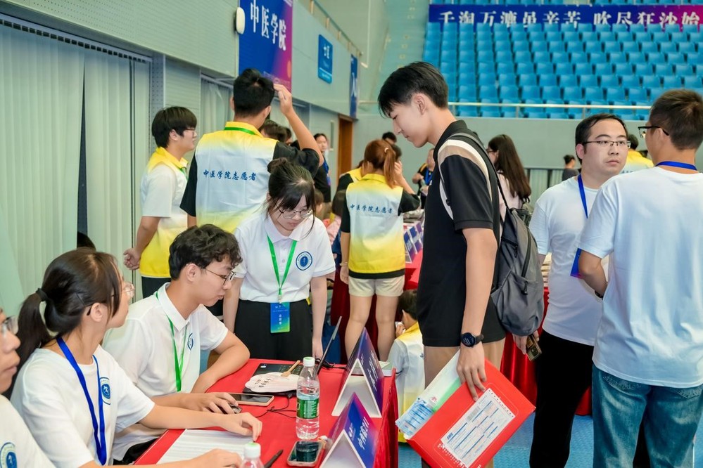 在中医药文化体验街,公司在迎新展示区中通过“专业启航”、“科研启蒙”、“雅艺启心”、“杏林启承”四大板块迎接新生,展现特色风采。由院领导及专家教授组成的“云翔书院教授领航团”在现场接受新生和家长的咨询,解答中西医临床医学专业培养与发展相关的问题,引领专业启航第一步。公司挑战杯国赛特等奖团队进行现场路演,启蒙新生的科研之路。通过漆扇与药茶体验让新生感受传统雅艺和中医药文化。校庆主题拓染让新生参与并感受热烈的70周年校庆氛围,激发学习的动力与信心。