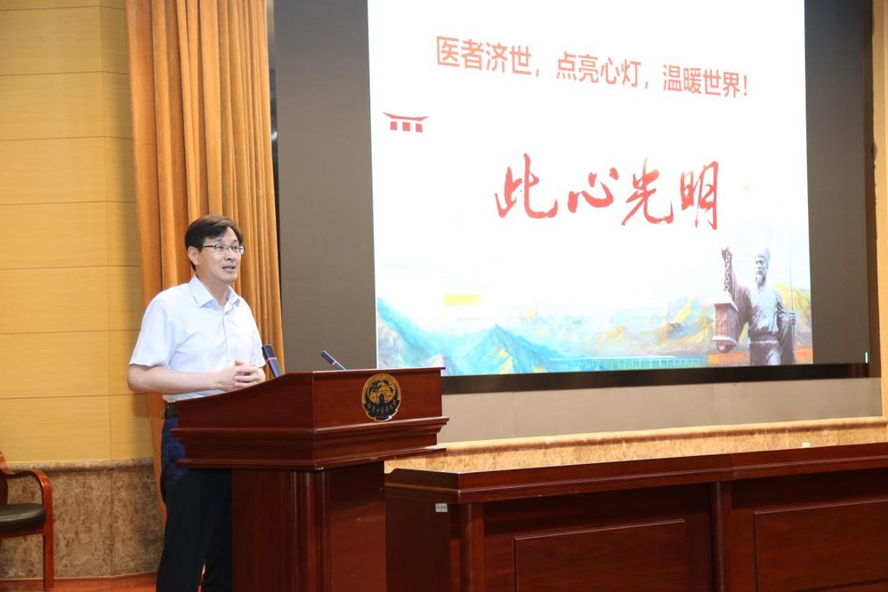 贾立军经理首先代表院领导致辞。他以《漫漫医途路,铸就光明心》为主题,激励全体新生,在前进的道路不会一帆风顺,需要处理好负面念头与不良情绪,在困境中调整心态,要认识到积极的心态是人生成败的底层逻辑,认知的格局决定命运的高度与广度。在中医药事业蓬勃发展的当下,志存高远,勤勉学习,掌握心态调整的方法,方能走好往后求学行医生涯中的每一步。