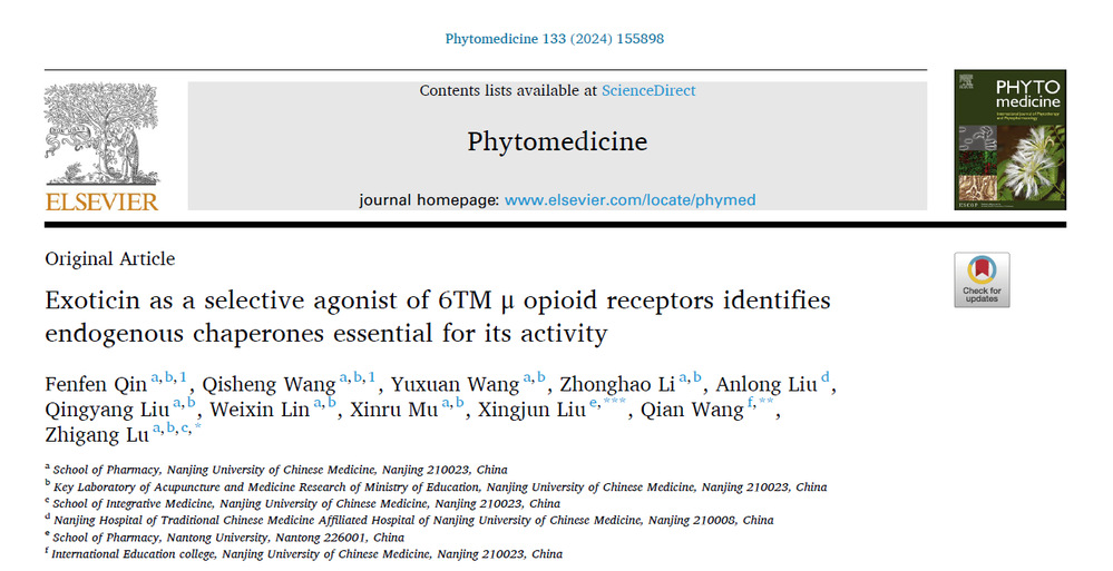 近期,tyc1286太阳成集团吕志刚教授团队在国际著名杂志Phytomedicine(中科院医学一区Top期刊)上发表有关天然产物中特异性靶向μ阿片受体6次跨膜剪切异构体(6TM-MOR)的成果:“Exoticin as a selective agonist of 6TM μ opioid receptors identifies endogenous chaperones essential for its activity”。