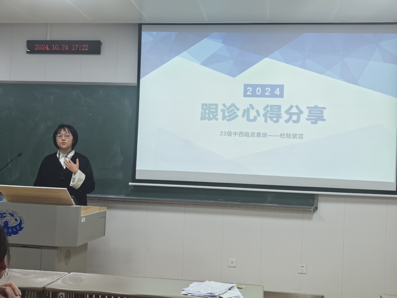 李沁颉同学则分享了自己在国医堂的跟诊经历,国医堂浓厚的学习氛围让她在暑假期间学到了很多新的内容,也让她了解了如何将中医药运用到现代疾病的治疗当中,为未来的学习和科研研究打下良好基础。
