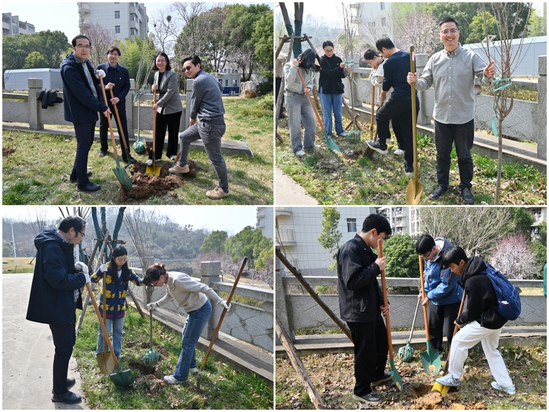 左言富书记讲述了植树节的由来,倡议广大师生要践行习近平总书记“绿水青山就是金山银山”的生态文明发展理念,为美丽校园建设多做贡献。左言书记、周恩超副董事长的带领下,大家铆足干劲、分工协作,挥锹铲土、扶苗培土下象征着希望与新生的30株樱花树。
