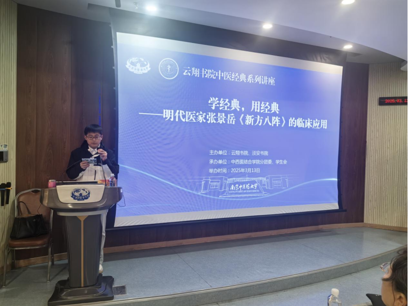 讲座中吴教授深入剖析张景岳的成长经历,解读其经典名方在临床实践中的应用,展现《新方八阵》的独特魅力与价值。现场气氛热烈,同学们积极思考学习。参加讲座的同学们纷纷表示,此次活动让他们对中医经典有了更深入的认识。