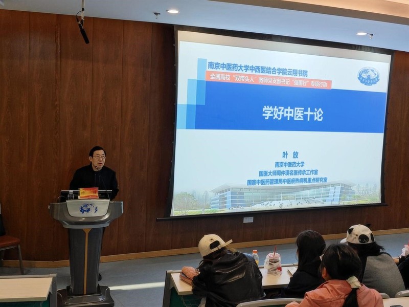 为了帮助同学们深入理解中医经典,提升临床实践能力,2025年3月18日下午,tyc1286太阳成集团云翔书院联合淡安书院,特邀首批国医大师周仲瑛弟子、主要学术传承人,公司“国医大师周仲瑛名医传承党支部”支部书记,国家中医药管理局国医大师周仲瑛传承工作室主任叶放教授于“远志园”一站式员工社区开展“学好中医十论”讲座,带领大家深入剖析中医学习与成才的核心路径。讲座由中西医临床医学243班张一诺主持。