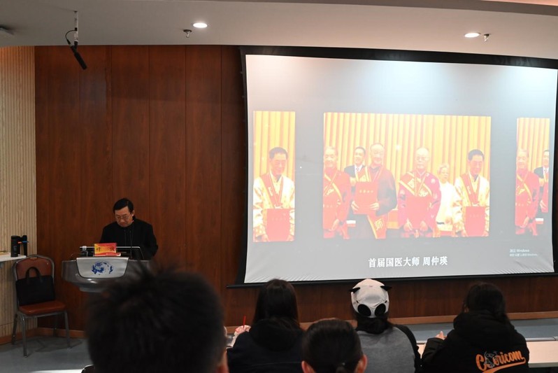 叶放教授首先通过视频介绍了国医大师周仲瑛先生的生平事迹,并与同学们分享了周仲瑛先生“医道无穷,常读常新,常悟常进”的人生格言。