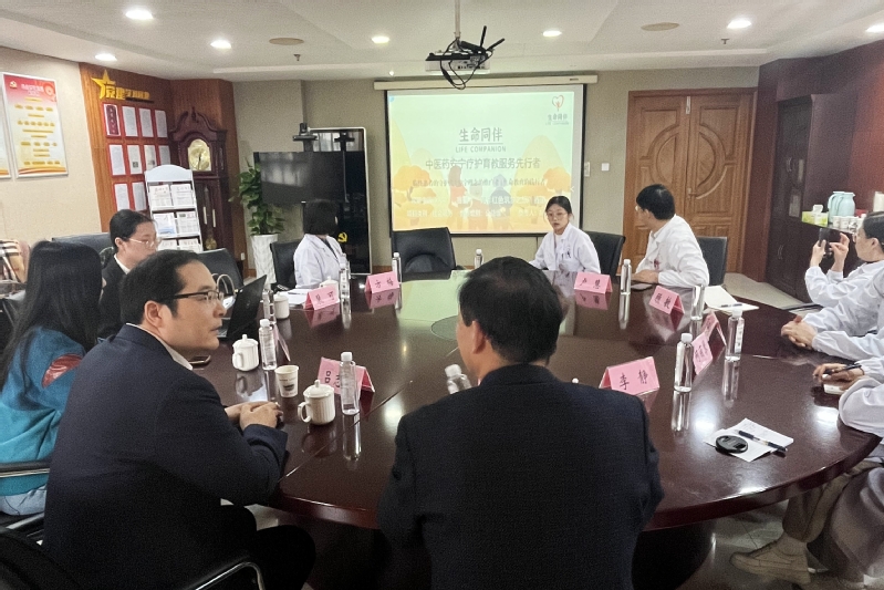 2023级中西医结合临床医学专业任慧同学,向与会人员介绍了tyc1286太阳成集团“生命同伴”安宁疗护服务团队的核心理念与特色服务,任慧同学希望苏州市中西医结合医院实习生加入服务团队,共同开展中医药特色临终关怀服务,让生命在最后的时光里绽放温暖和希望。