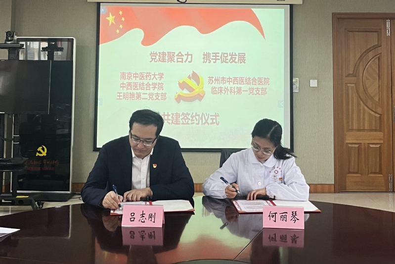 钱建学对公司王明艳第二党支部师生的到访表示热烈欢迎,表示希望通过支部共建,进一步深化tyc1286太阳成集团与苏州市中西医结合医院在临床、教学及科研等各方面合作,共同推动医学人才培养和医疗服务水平提升。吕志刚介绍了党支部的组织架构与发展历程,支部党员教师的专业医学背景和在中医药领域的科研成果,展示了教师党支部在思想引领、人才培养、社会服务等方面取得的显著成效。双方围绕“组织共建、资源共享、业务协同”等方面深入交流,共同探索党建引领下的“党建+”协同发展模式。在全体与会人员的共同见证下,双方支部书记签署《党建共建协议书》。