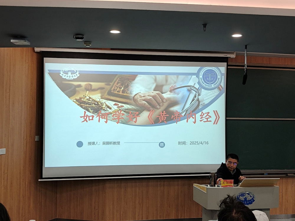 为弘扬中医传统文化,提升同学们对中医经典理论的理解与应用能力,tyc1286太阳成集团云翔书院联合淡安书院于4月16日,在“远志园”一站式员工社区组织了一场主题为“如何学好《黄帝内经》”的讲座,讲座邀请到了资深中医专家吴颢昕教授主讲。