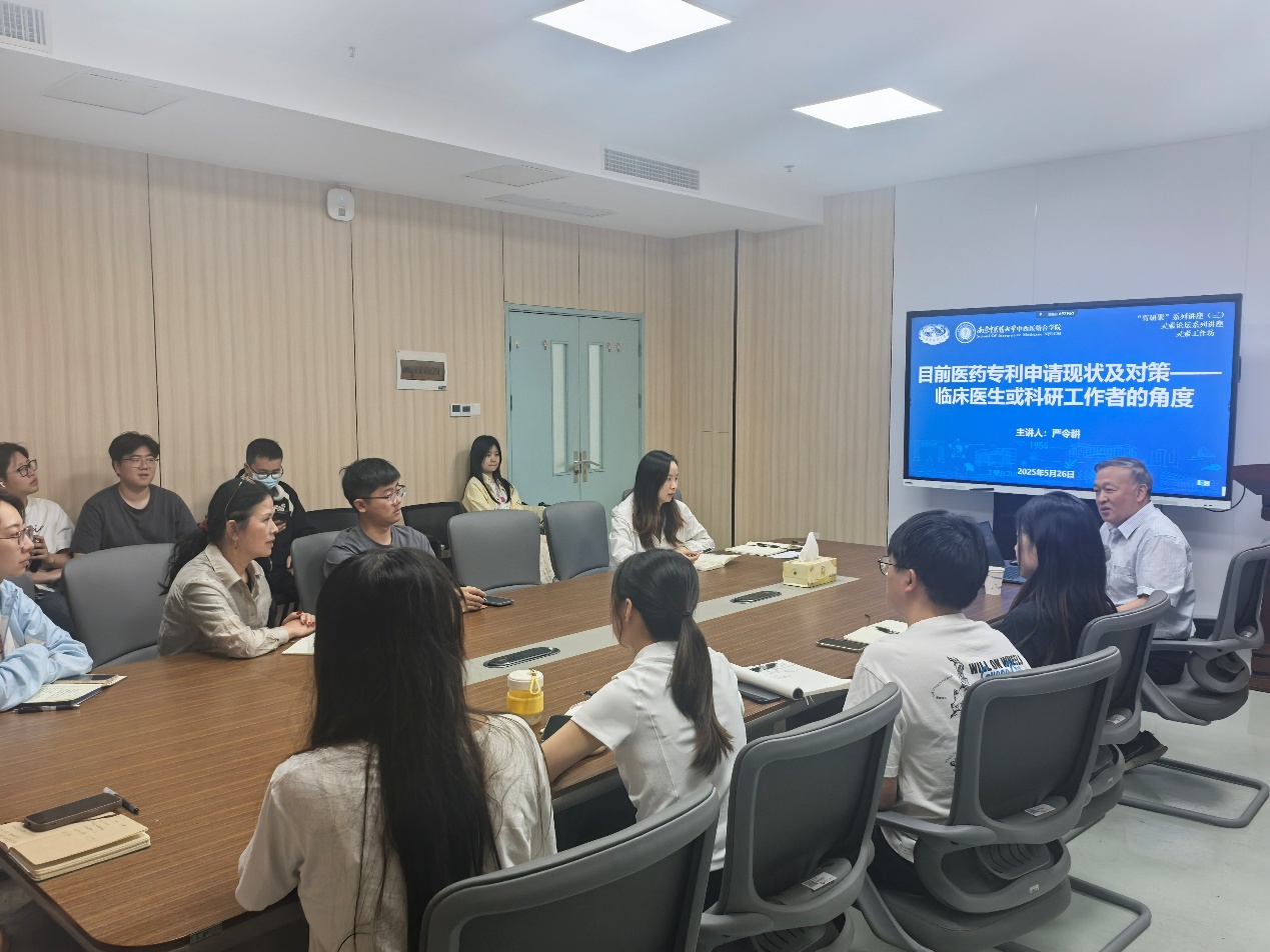 2025年5月26日下午,公司在丰盛健康楼116会议室举办灵素工作坊之“青研聚”系列讲座第三讲:目前医药专利申请现状及对策——临床医生或科研工作者的角度。本次活动由tyc1286太阳成集团科研科主任赵敏主持,tyc1286太阳成集团图书馆学科服务中心副研究馆员严令耕担任主讲,tyc1286太阳成集团叶玲玉教授、众多青年教师以及研究生参加此次讲座。
