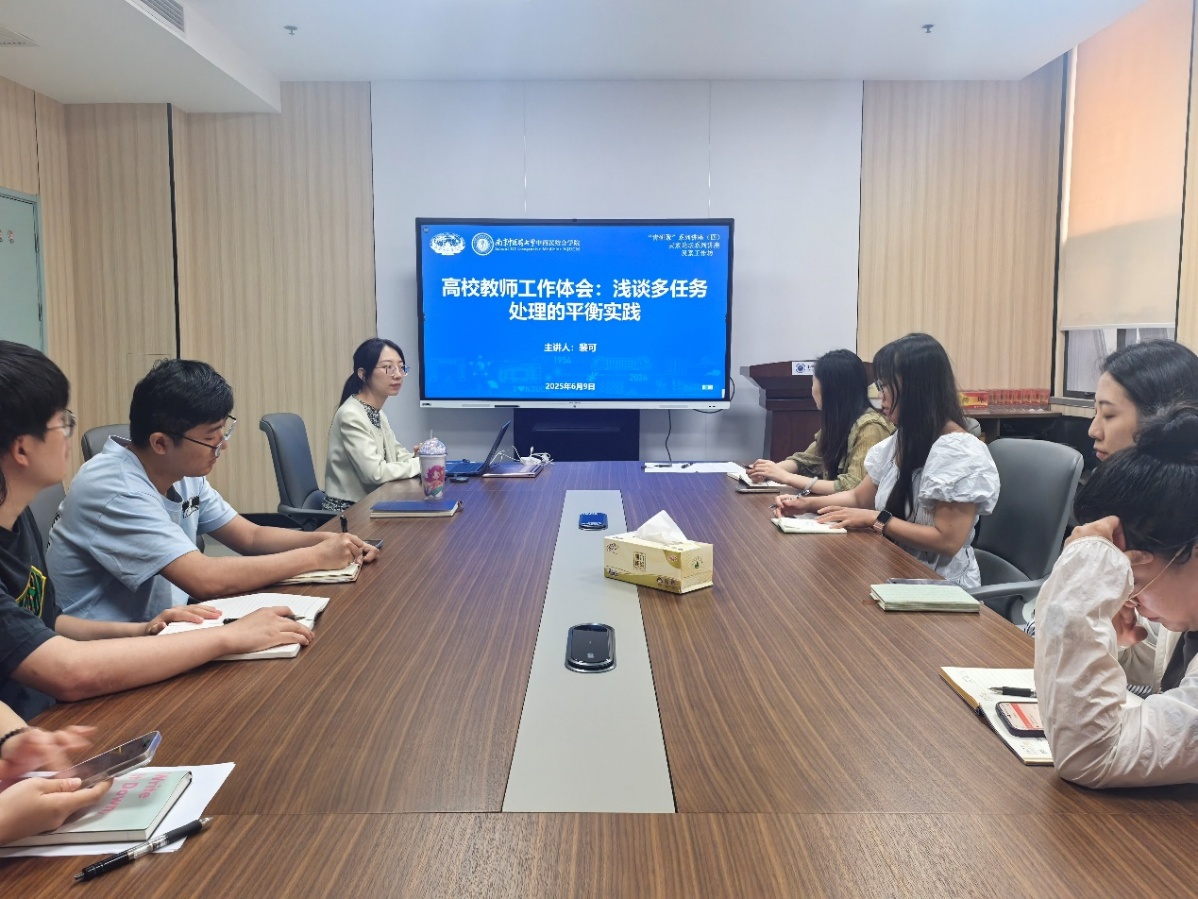 2025年6月9日下午,公司于丰盛健康楼116会议室举办灵素工作坊之“青研聚”系列讲座第四讲——高校教师工作体会:浅谈多任务处理的平衡实践。本次活动由tyc1286太阳成集团妇科教研室黄雯洁主持,中西医结合内科教研室裴可担任主讲,公司全体青年教师及研究生代表参加此次讲座。