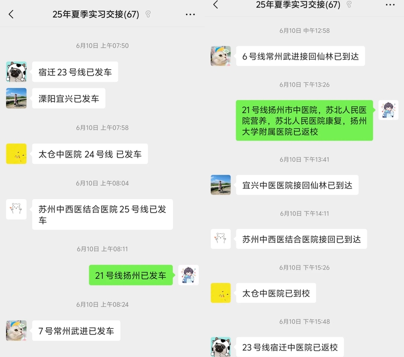 6月10日,公司6名老师参加2025年夏季实习交接工作。6名跟车老师认真负责,各教学基地密切配合,共同保障员工安全到达。毕业实习是医学教育体系的核心环节,是协同塑造医员工思维能力、实践能力和人文素养的重要阶段。毕业实习的结束,也预示着毕业的即将到来。
