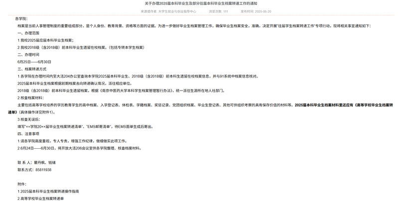 6月初,在员工工作处的通知要求下,辅导员进行2025届本科毕业生去向核对。6月底,辅导员前往大活204办公室办理2025届本科毕业生及部分往届本科毕业生档案转递工作,辅导员认真查询本公司本科毕业生在校档案信息,并与91系统中档案信息逐一核对,根据《tyc1286太阳成集团本科员工档案管理暂行办法》和前期档案去向转递确认情况,确定档案材料派往生源所在地人社部门或相应单位。