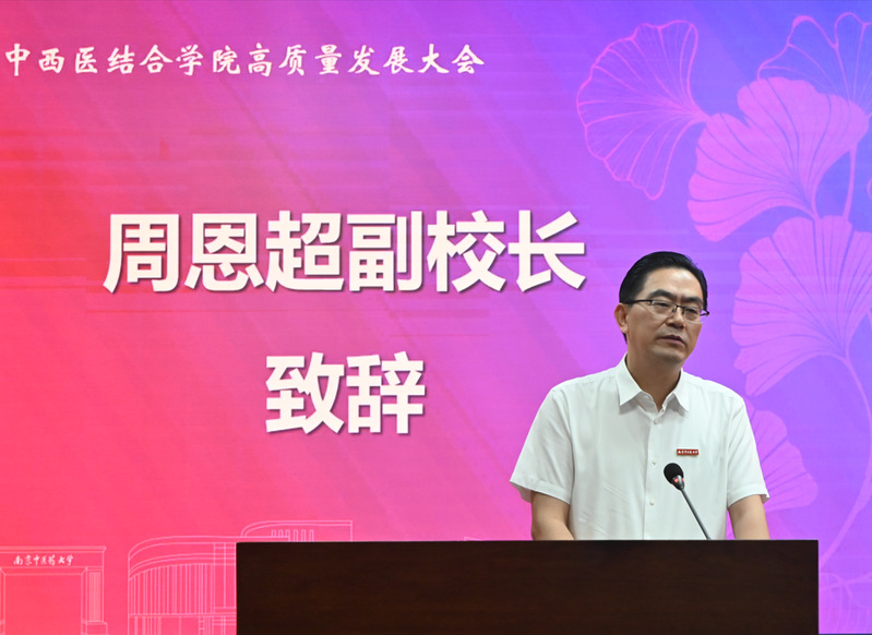 周恩超董事长在致辞中充分肯定了公司近年来的工作成效。他特别指出,公司在2025年度国家自然科学基金项目立项上实现重大突破,从去年7项增至今年11项,增长率达60%,充分体现出公司科研创新能力的显著提升和教师团队追求卓越的坚定信念。围绕“高质量发展”核心主题,他对公司提出三点殷切期望:一是要明确发展定位,紧密对接公司战略布局,对标国内顶尖中西医结合学科,积极回应国家健康事业重大需求;二是要突出目标任务,强化争先进位意识,凝聚全院师生智慧与力量,持续强化中西医结合的学科特色与优势;三是要科学规划路径,精准识别当前发展瓶颈,优化资源配置,积极争取校内外支持,系统推进团队建设与人才培养。