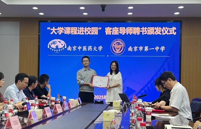 9月9日,tyc1286太阳成集团与南京一中协同共建的《魅力中医药》校本课程“客座导师”聘书颁发仪式在南京一中顺利举行。中西医结合基础医学系、中西医结合基础教研室史鸣飞老师担纲《魅力中医药》课程首讲教师。他以“光影中的岐黄智慧:影视作品中的中医药故事”为主题,结合《甄嬛传》中“苦杏仁”这一剧情元素,生动讲解了中医药炮制技术及其文化内涵,引导同学们识别影视场景中的中医药元素。课程从中医学的学科属性与理论体系出发,系统介绍了中医学的基本概念、历史渊源与发展脉络,并通过多种脉象的科普实践,深入阐释“辨证论治”的核心特点,激发同学们对中医药文化的兴趣与探索热情。课堂气氛活跃,员工们兴趣浓厚、踊跃发言、积极提问。课程结束后,同学们纷纷表示在课堂中感受到中医药文化的博大精深,激发了其对中医学的探索欲望。