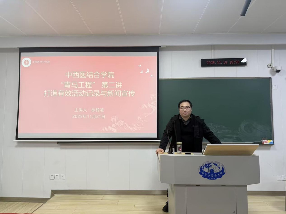 培训中,徐梓凌老师为同学们介绍了新闻稿的定义和特征,强调了前期收集信息的重要性,指出新闻稿的特点,应为高度凝炼、直奔主题、突出重点,并重点介绍了“倒金字塔”型的新闻结构,以及新闻稿各部分的写作注意事项。