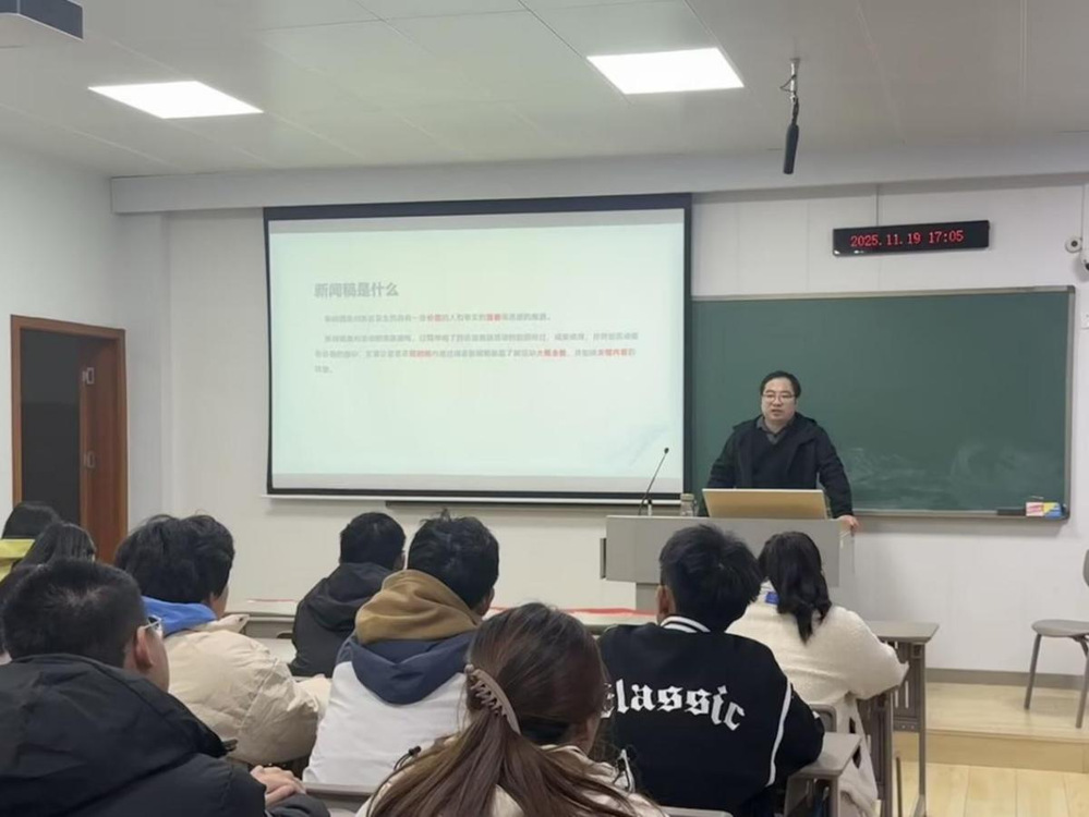 随后,徐梓凌老师就新闻照片拍摄进行讲解。他与同学们热情的互动,生动阐述拍摄新闻照片的方法和要领,并结合自己的拍摄经历与实例,与同学们分享拍摄经验。培训最后,徐老师以一篇新闻稿为例,让同学们分析讨论其中的不足之处,并与修改后的稿件做对比,引导同学们掌握正确的新闻范式。