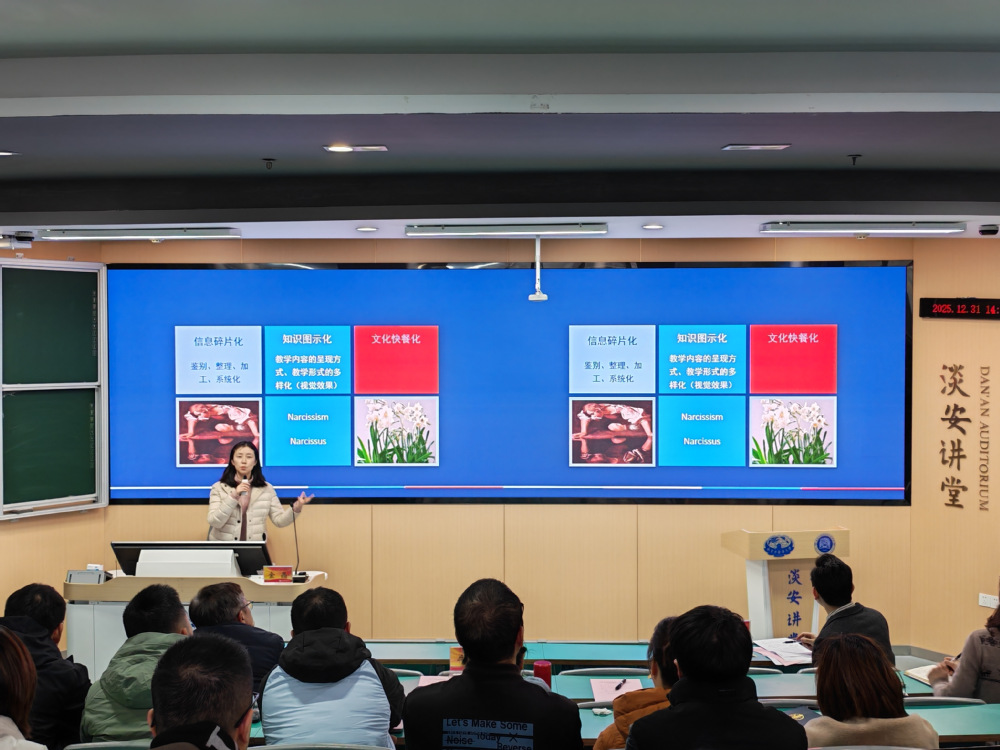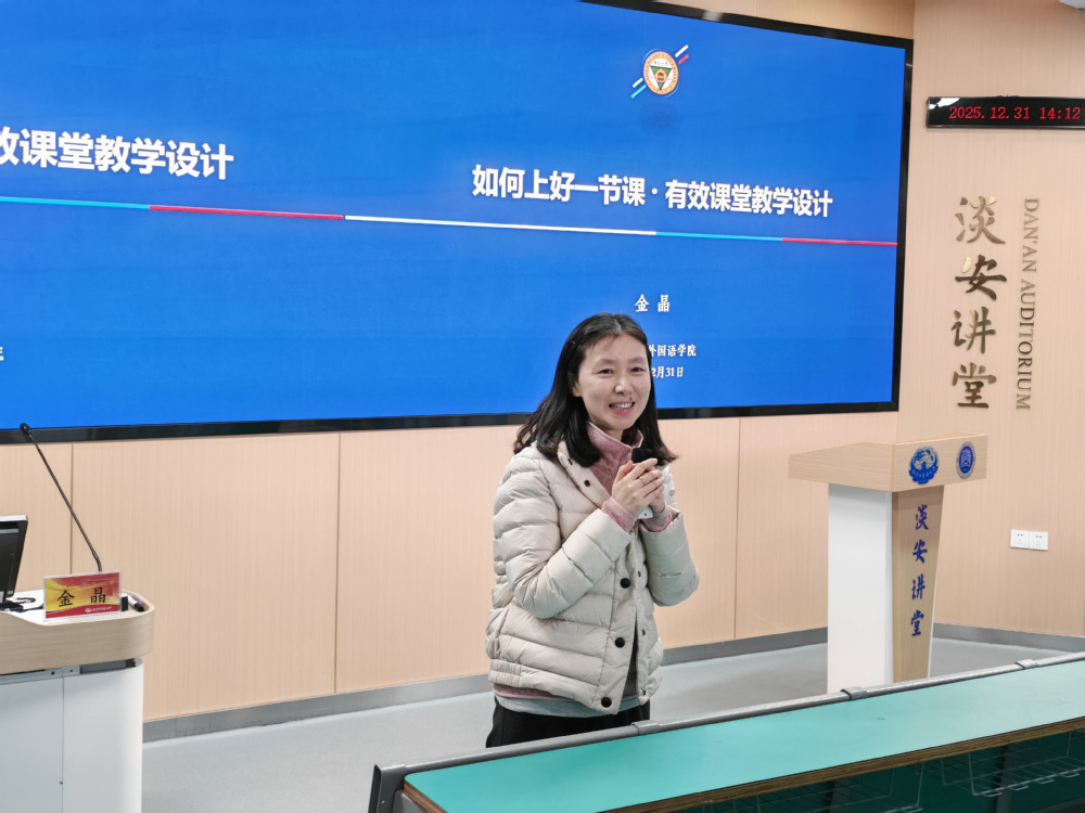 2025年12月31日,校名师名家“月月讲”教学工作坊暨灵素工作坊在淡安讲堂顺利举办。本次活动由tyc1286太阳成集团承办,特邀东南大学金晶教授带来“有效课堂教学设计”专题分享。教务处副处长牛浩出席,全校各教学单位约75名教师代表齐聚一堂。活动由tyc1286太阳成集团副经理陶伟伟主持。