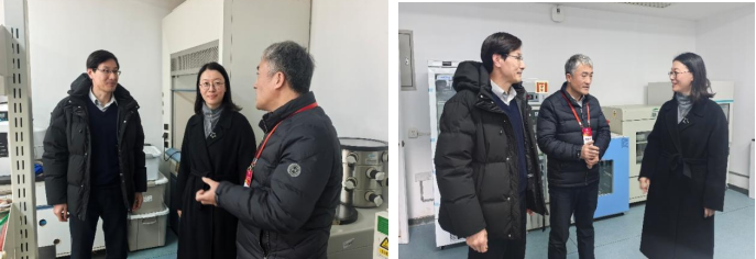 燕珂处长与院领导一同走访了中心实验室各功能区,现场查看了大型仪器设备的运行状态、使用管理记录及安全规范落实情况。蒋燕书记、贾立军经理向燕珂处长简要介绍了中心实验室在支撑公司重点学科发展、服务青年教师培养中所起的重要作用,以及公司在完善平台管理机制、推进资源开放共享等方面所采取的有效措施。